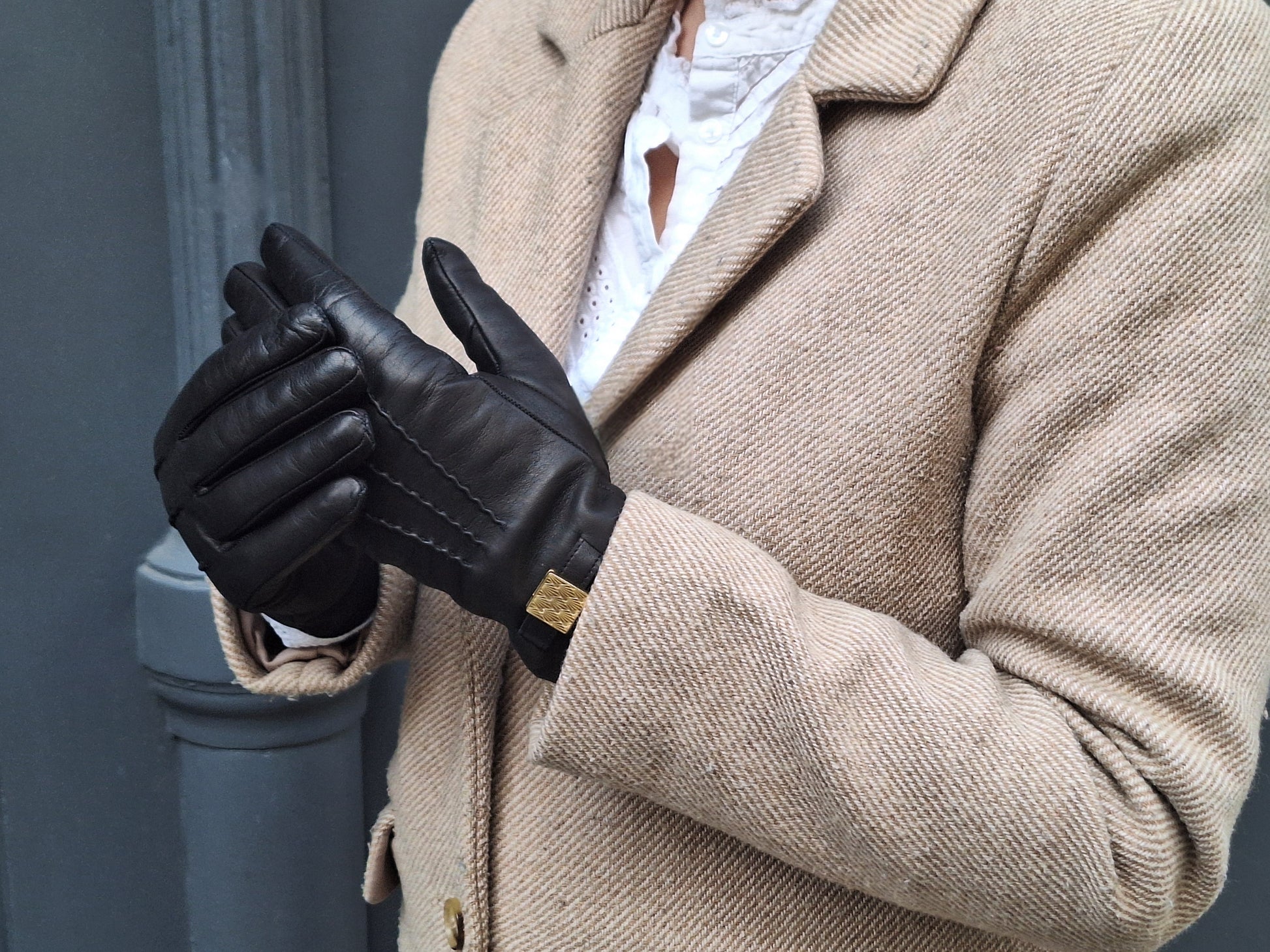 Nos gants en cuir, confectionnés à la main en Italie, allient souplesse et raffinement. Doublés en cashmere, ils vous assurent une protection idéale contre le froid et un confort optimal. Chaque paire s’associe à un bijou aimanté permettant de fixer les deux gants entre eux pour un usage pratique au quotidien.